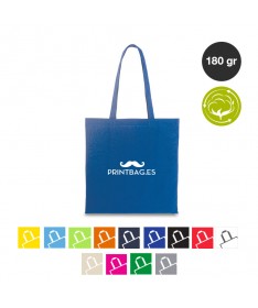 Bolsos de mano personalizados, fabricados en algodón de 220g/m², con asas de algodón en color blanco. De acabado cosido, con fuelle y asas largas de 90cm reforzadas.